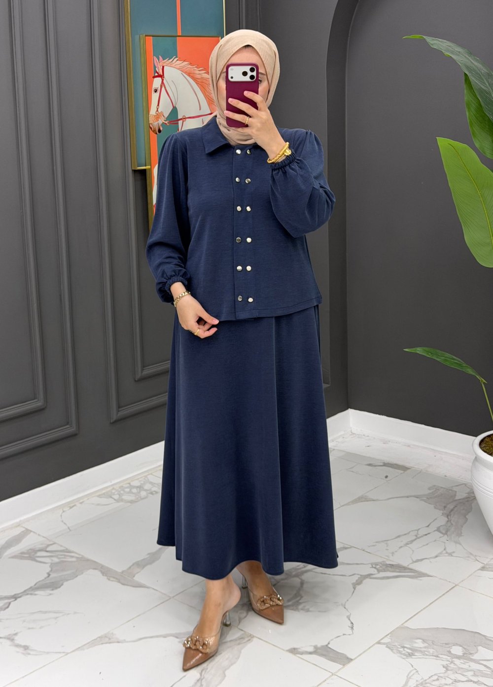 Bergüzar etekli takım Kod= 1677 38-40-42-44 beden Pike kumaş Tunik boyu 58 cm Etek boyu 92 cm