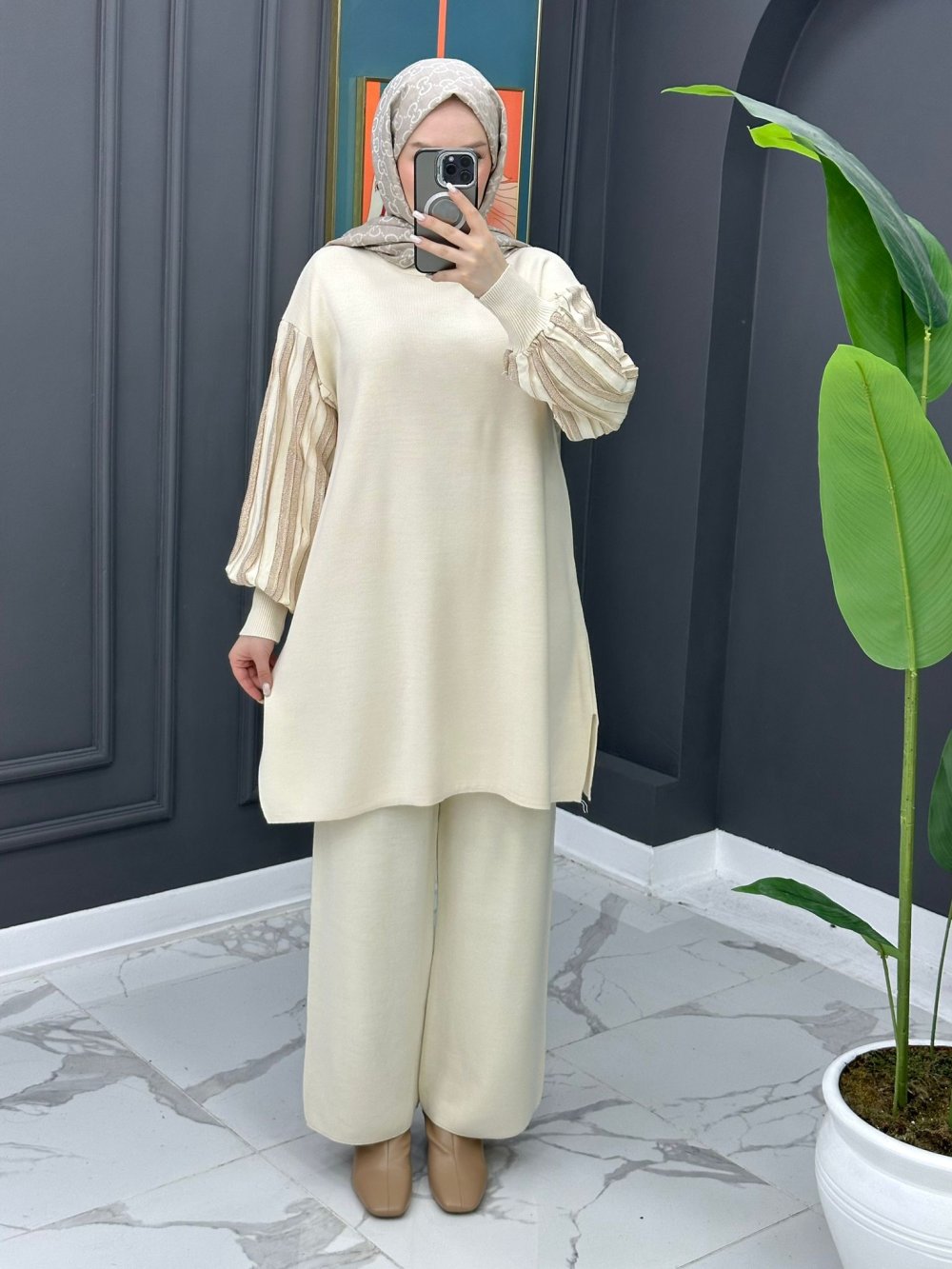 Merve Triko Takım - Krem