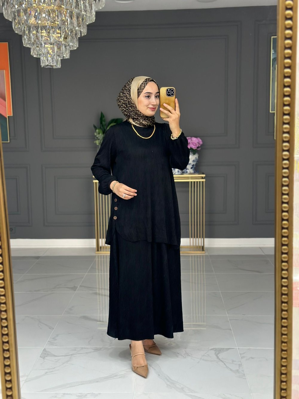 Seda etekli takım - siyah